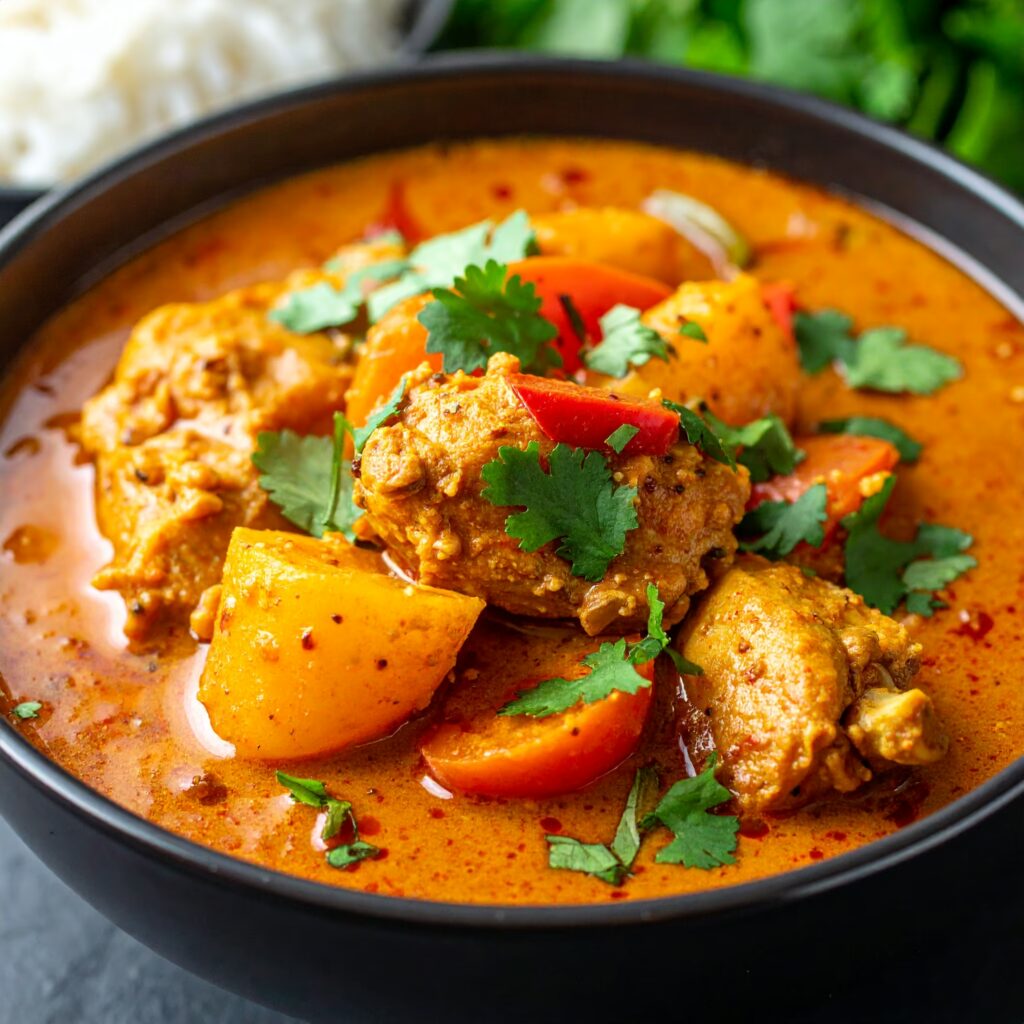 - Pour the coconut curry mixture over the chicken and vegetables.
